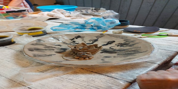 - nadat jij klaar bent met de workshop, gaat het proces in het atelier verder. De schaal mag drogen. Als ik de schaal erg kwetsbaar vind neem ik daar goed de tijd voor